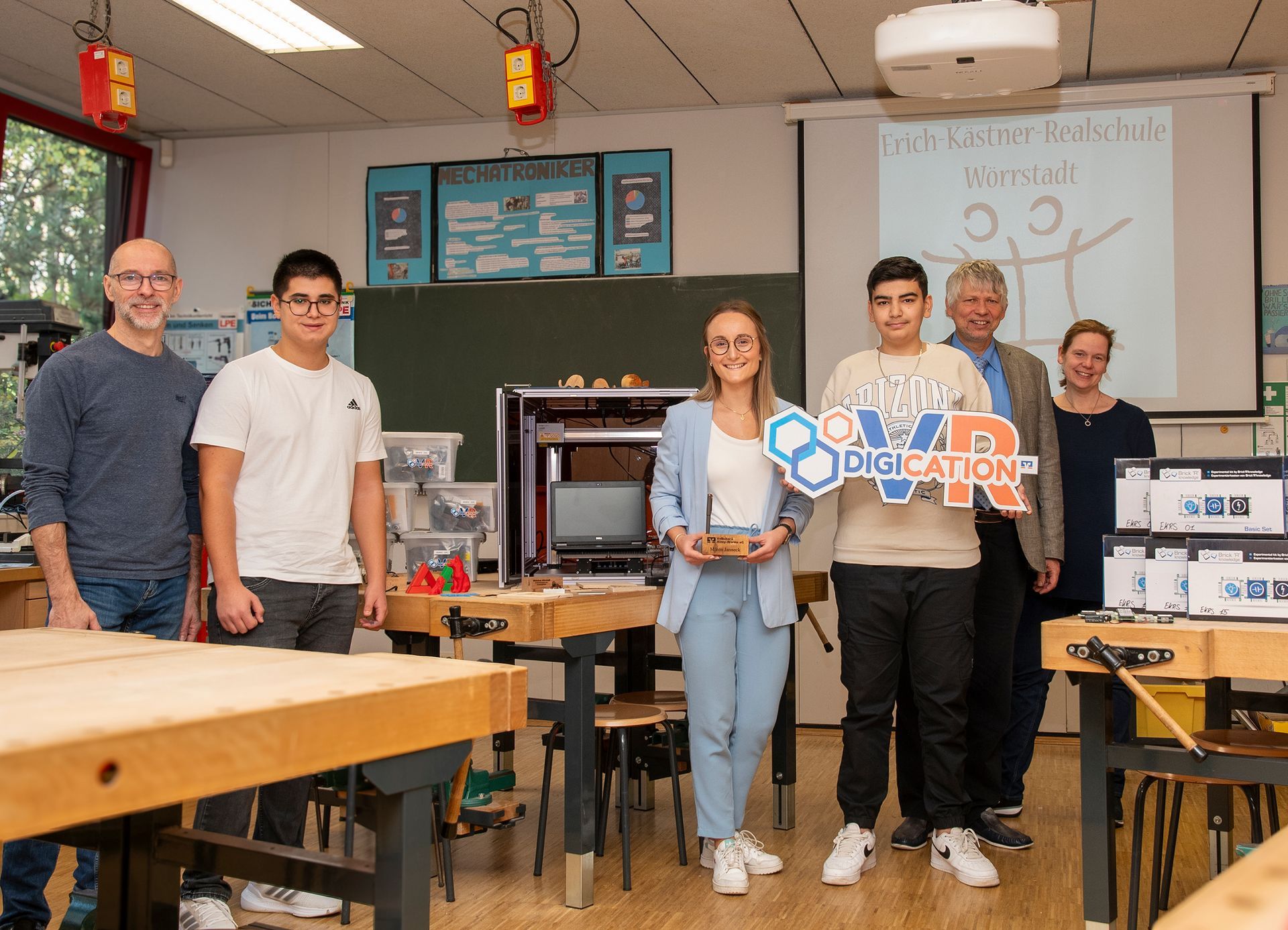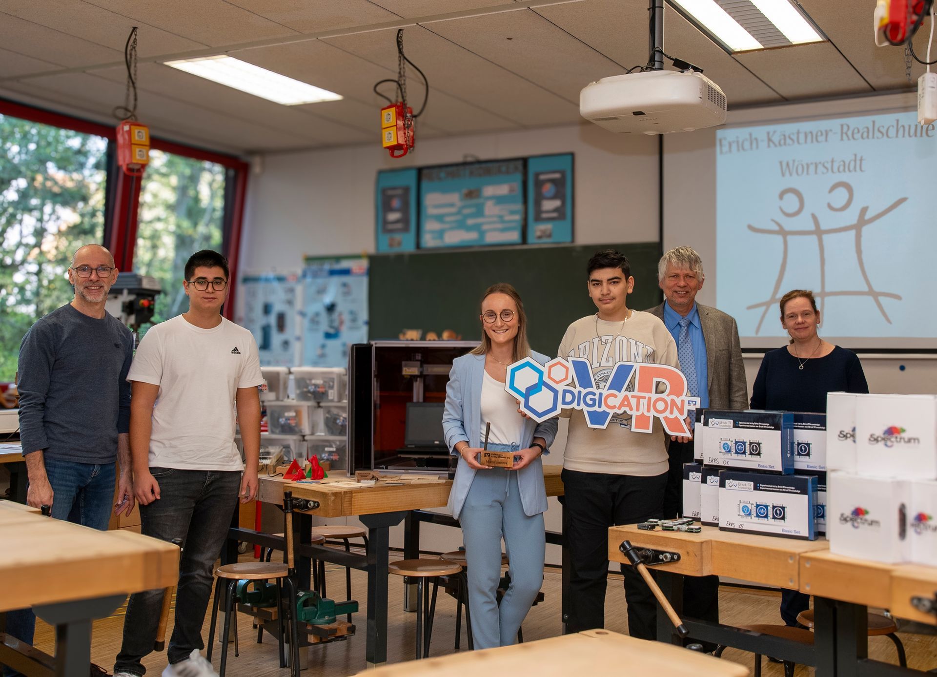 Im Rahmen des Förderprogramms VR-Digication spendete die Volksbank Alzey-Worms, vertreten durch Frau Maren Janneck, moderne Lernmaterialien im Wert von rund 10.000 Euro an unsere Schule. Die offizielle Übergabe der Lehr- und Lernmittel fand am 8. November statt. Die beiden Schüler der Klasse 10a Ensar und Aykut nahmen diese stellvertretend für die Schulgemeinschaft entgegen.